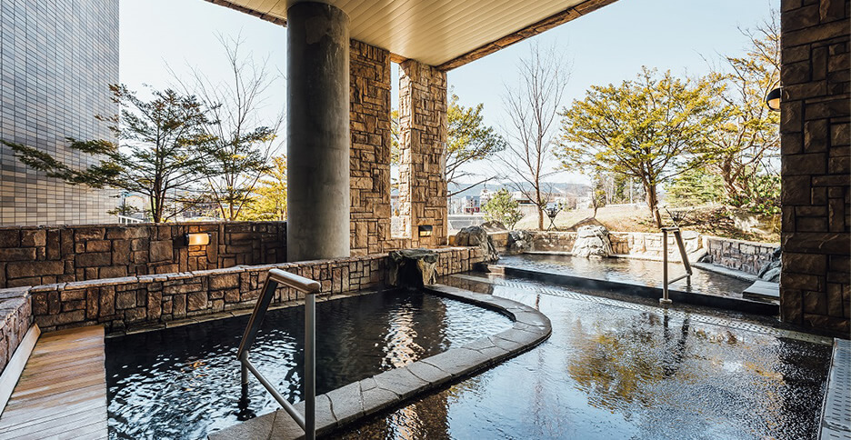 露天風呂や内湯、サウナもあり、広々とした浴場でゆったりくつろげます。